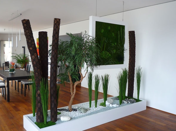 - Мобильные: раздвижные перегородки и стеллажи, а также варианты использования из живых растений, нитей, веревок, японских штор, жалюзи.