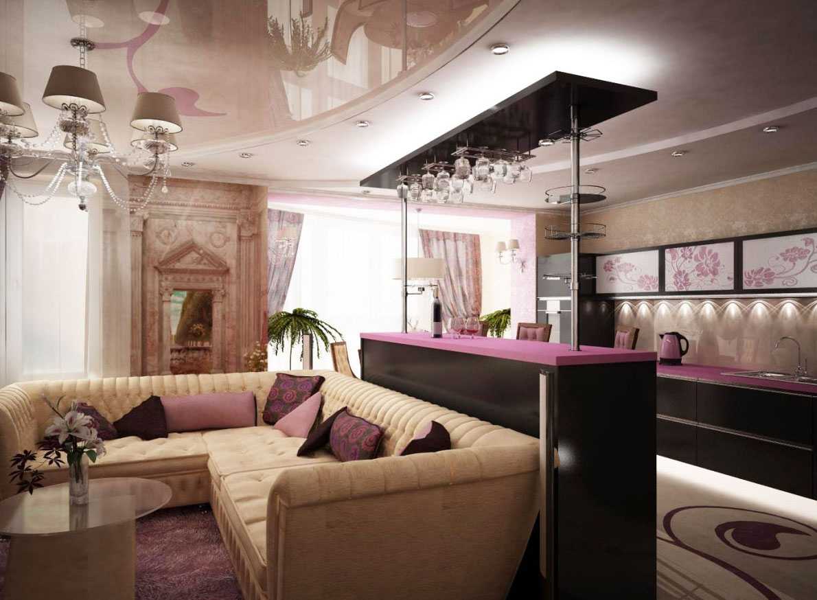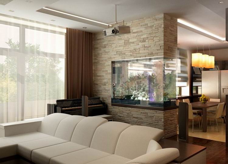 В декоративном оформлении кухни-гостиной существует много типов перегородок: