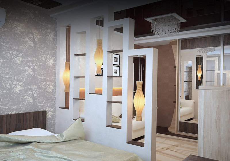 В спальне тоже есть много вариантов эффективного использования жилого пространства, придав ему свою изюминку и эксклюзивность. Рассмотрев некоторые конструктивные решения, не исключено, что вы сможете сделать это своими руками из подручных материалов. Перегородка в спальне очень популярна и позволяет в полной мере разгуляться фантазии.