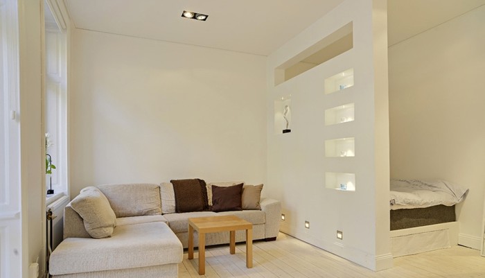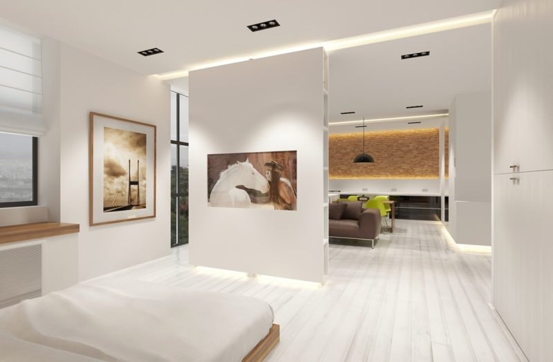 К сведению: если вам нужна монолитная граница, остановите свой выбор на прочных кирпичных или гипсокартонных барьерах. В остальных случаях лучше, если это будут легкие, воздушные элементы, обозначающие границы зон в комнате лишь визуально.