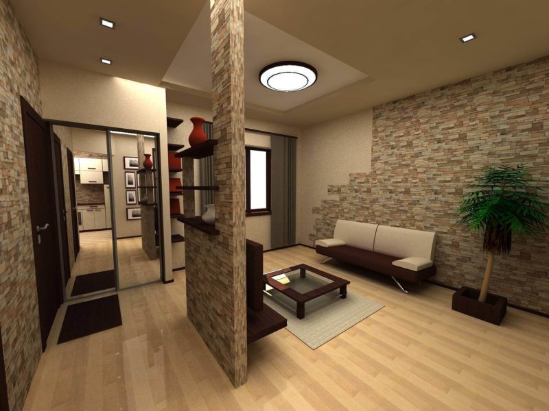 Выполненный своими руками или под заказ, межкомнатный барьер имеет свою эстетическую ценность. От того, какой был выбран основной и облицовочный материал, зависит и выбор дизайна. Где-то будет уместна кирпичная кладка, которую впоследствии можно оформить фресками или лепниной, а где-то — декоративные комбинированные щиты.