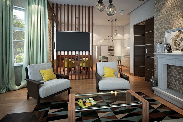 К сведению: удобной и полезной перегородкой является барная стойка. Кроме того, что она выполняет декоративную функцию и не затемняет жилое пространство, ее еще с успехом используют в качестве стола.