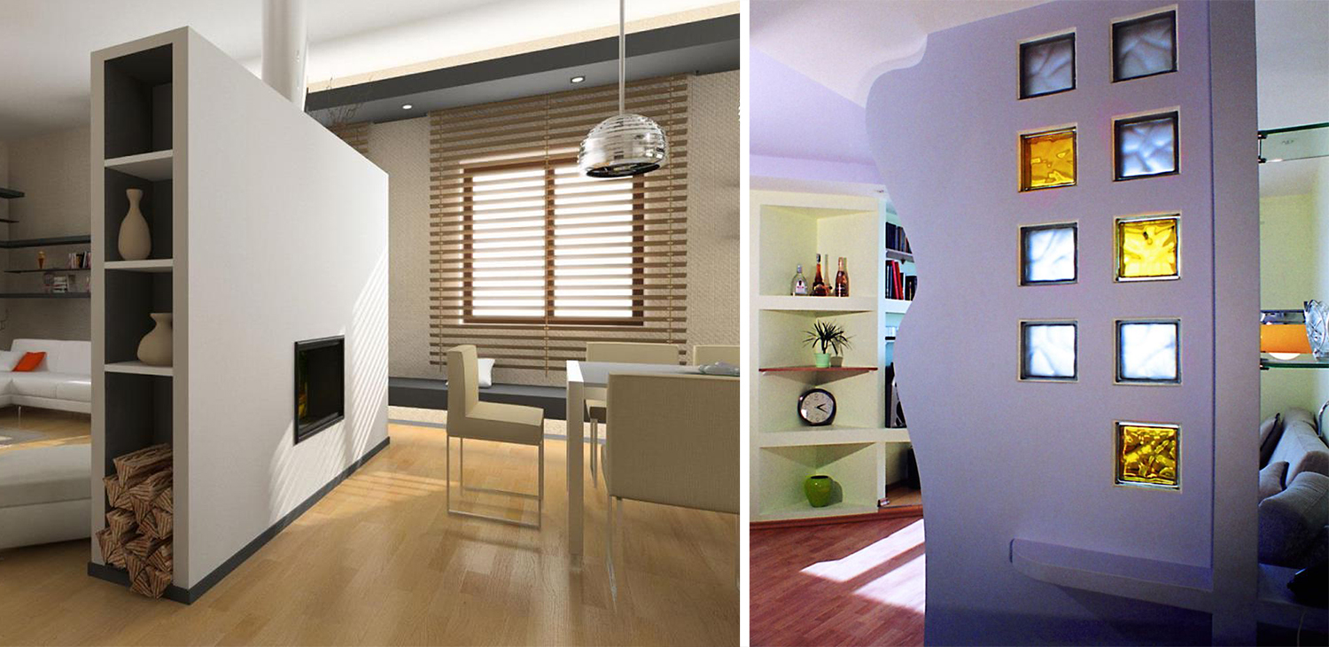 - Стационарные: из гипсокартона, кирпича, дерева, стекла, пластика;