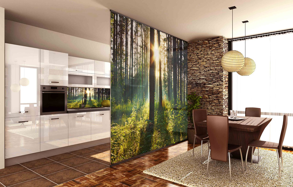 - Имитация стены. Это позволяет создать полноценную комнату, отделив, например, кухню от столовой. Такая фальш-стена является прекрасным звукоизолятором;