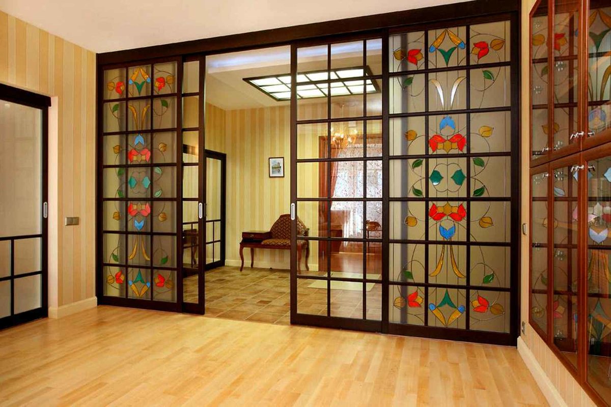 - Раздвижные перегородки. По принципу работы обыкновенной двери или складные ширмы, они удобны и легки. Разнообразный их дизайн удачно сможет вписаться в любой интерьер;